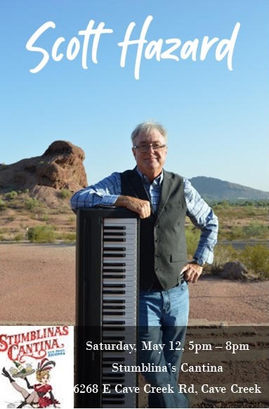 Friday at Stumblinas May 9, 2023 — Leave a comment This Friday, May 12, I’ll have my piano and guitar with me on the outdoor patio at Stumblinas. Weather should be great. Share this: Click to share on X (Opens in new window) X Click to share on Facebook (Opens in new window) Facebook Like Loading... Related