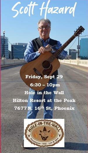 This has become a regular venue for me. Come join me the Hole in the Wall BBQ restaurant on Friday, September 29. This is near the center of the Hilton at the Peak Resort by the pool. It’s outdoors but it’s supposed to be a pleasant evening.