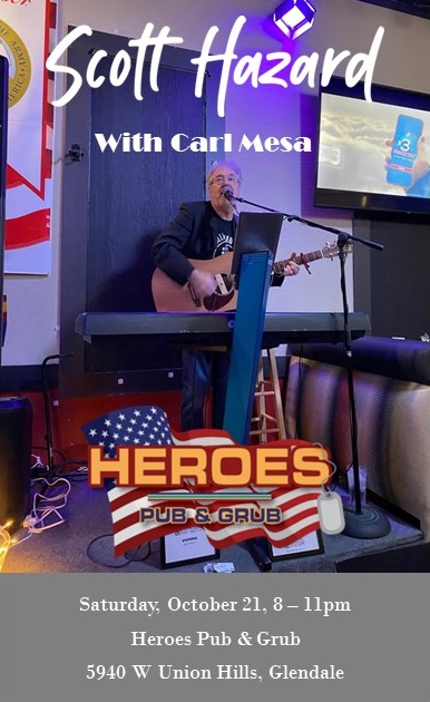 I’ll be appearing this Saturday at Heroes Pub & Grub with Carlito Mesa, lead guitarist for T HE VARIANTS. He just finished playing at the AZ State Fair. Come out and see us.