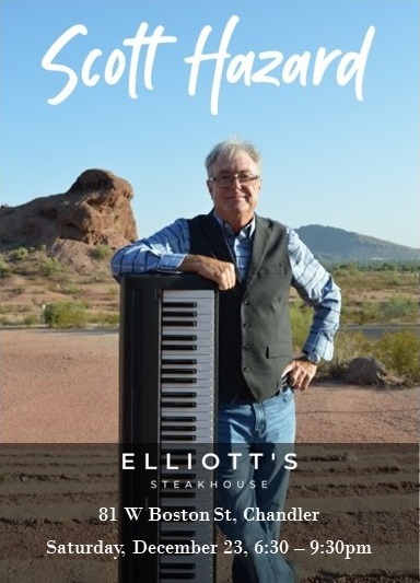 I’ll be playing cocktail piano music at Elliot’s Steakhouse in Chandler on your last shopping day before Christmas Eve. So reward yourself after a long day of buying stuff with a steak dinner and some cool sounds. I’ll sing a few songs as well.