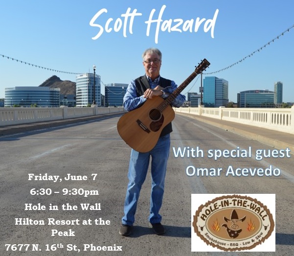 I’m back at the Hole in the Wall BBQ restaurant at the Hilton at the Peak this Friday. We are playing outside on the restaurant patio overlooking the pool and lazy river. It will be warm, but they do a good job with the misters and umbrellas, so come on out.