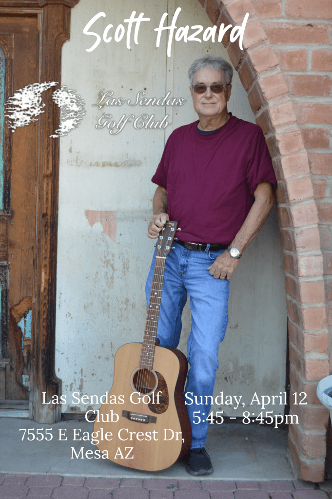 Though I’m a big-time golfer, I won’t be playing the course. I’ll be playing music on the restaurant patio. Join me at Las Sendas Golf Club in Mesa this Sunday, April 12 from 5:45 to 8:45pm.